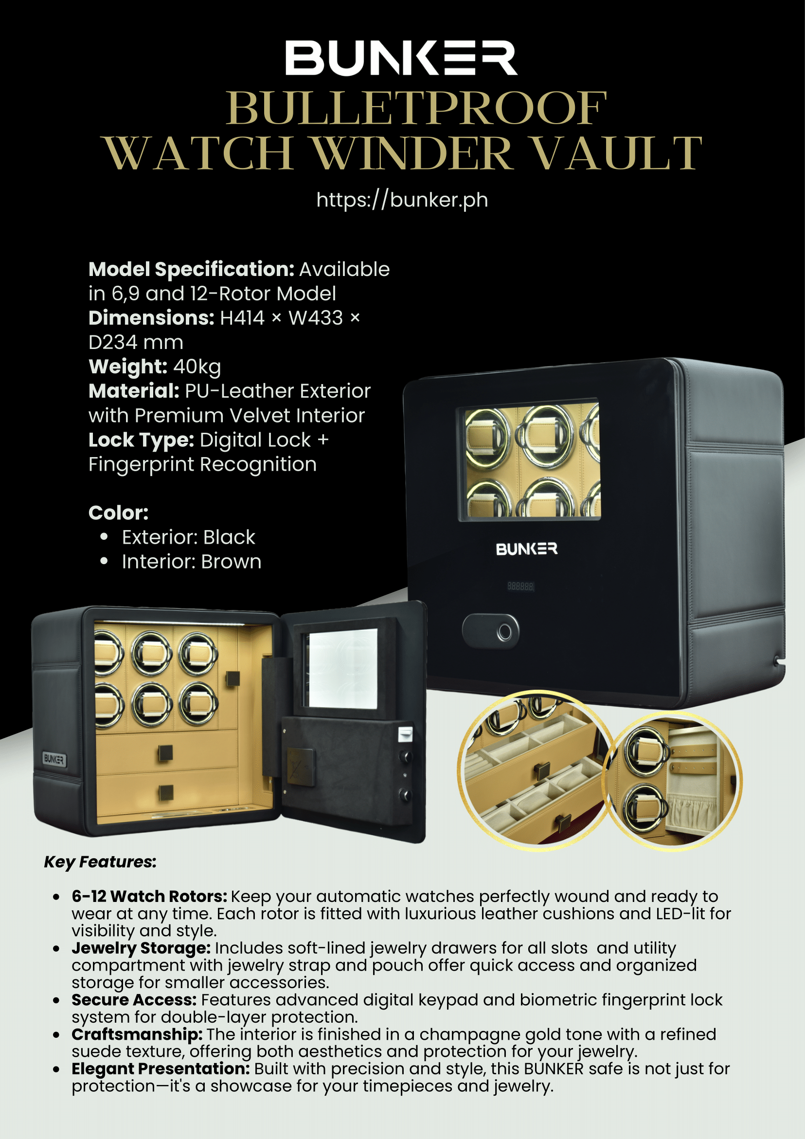 Bunker Watch Vault (Black Exterior and Brown Interior)